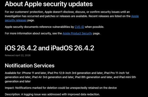 In a security advisory released on Wednesday, Apple said it had fixed a bug that allowed “notifications marked for deletion” to be “unexpectedly retained on the device.”