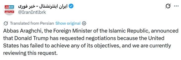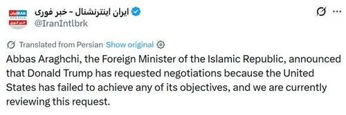 Iran’s Fars news agency reported that Araghchi has “conveyed written messages regarding Iran’s red lines to the American side through Pakistani intermediaries.”
