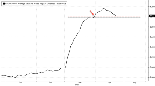 Continuing our coverage of consumer behavior shifts at petrol stations and convenience stores, the U.S. national average for 87-octane gasoline has remained above the politically sensitive $4-a-gallon level for three weeks. Goldman analysts have released a new note indicating that a majority of convenience stores are seeing drivers buying less fuel and trading down in-store.