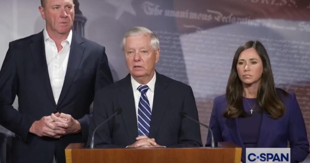 Graham and fellow Sens. Katie Britt and Eric Schmitt held a press conference Monday evening, unveiling a bill “to fund the construction of the presidential ballroom in the East Wing of the White House.”