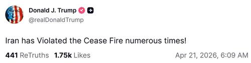 • Trump on Truth Social early Tuesday: Iran has Violated the Cease Fire numerous times!