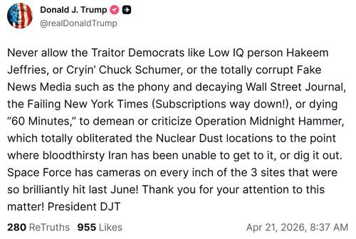 He had quickly followed the above with the below message talking about having ‘obliterated’ Iran’s ‘nuclear dust’ to the point that the Iranians can’t get to it: